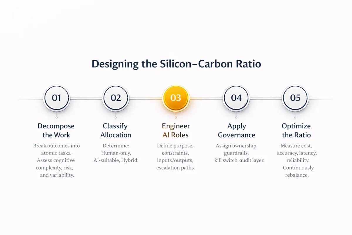 We break roles into Atomic Tasks. By classifying labor into our four proprietary quadrants, we identify where Silicon belongs and where Carbon is essential.